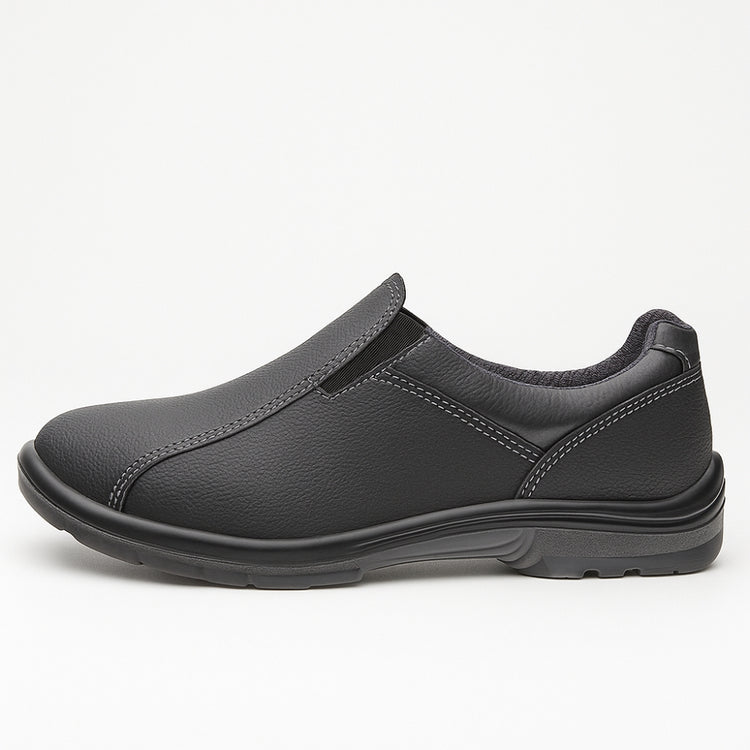 I) Calçado com absorção de energia na região do salto (calcanhar) e com resistência ao escorregamento em piso de cerâmica contaminado com lauril sulfato de sódio (detergente) e com glicerol (óleo). (SRC). II) Solado resistente ao óleo combustível (FO).