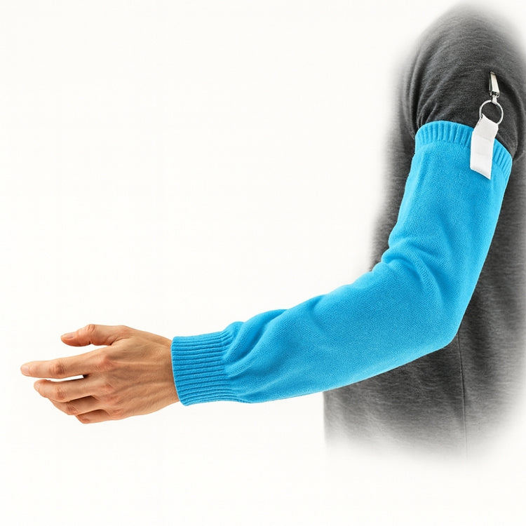 Manga de segurança confeccionada em raspa de couro bovino, costurada com linha aramida, punho em malha, par unido por elástico.