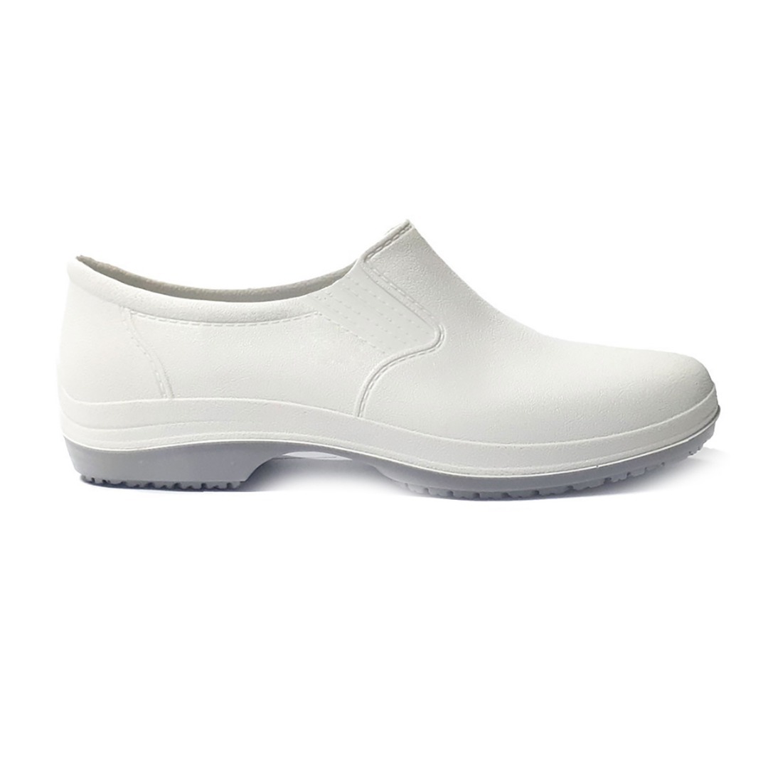 Calçado ocupacional tipo calçado baixo, confeccionado em PVC injetado, com palmilha interna removível.