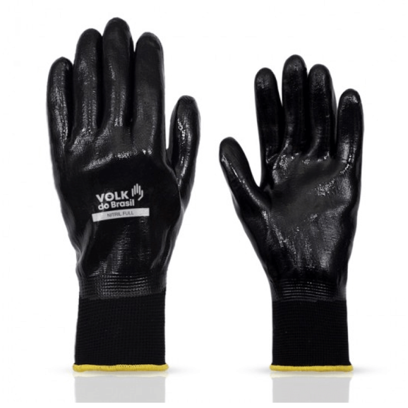 Luva de segurança confeccionada em suporte têxtil de fios de nylon, revestimento externo total em borracha nitrílica e acabamento antiderrapante arenoso na região palmar, ponta dos dedos e dorso. Tamanhos: 6 (EP), 7 (P), 8 (M), 9 (G), 10 (EG) e 11 (EEG).