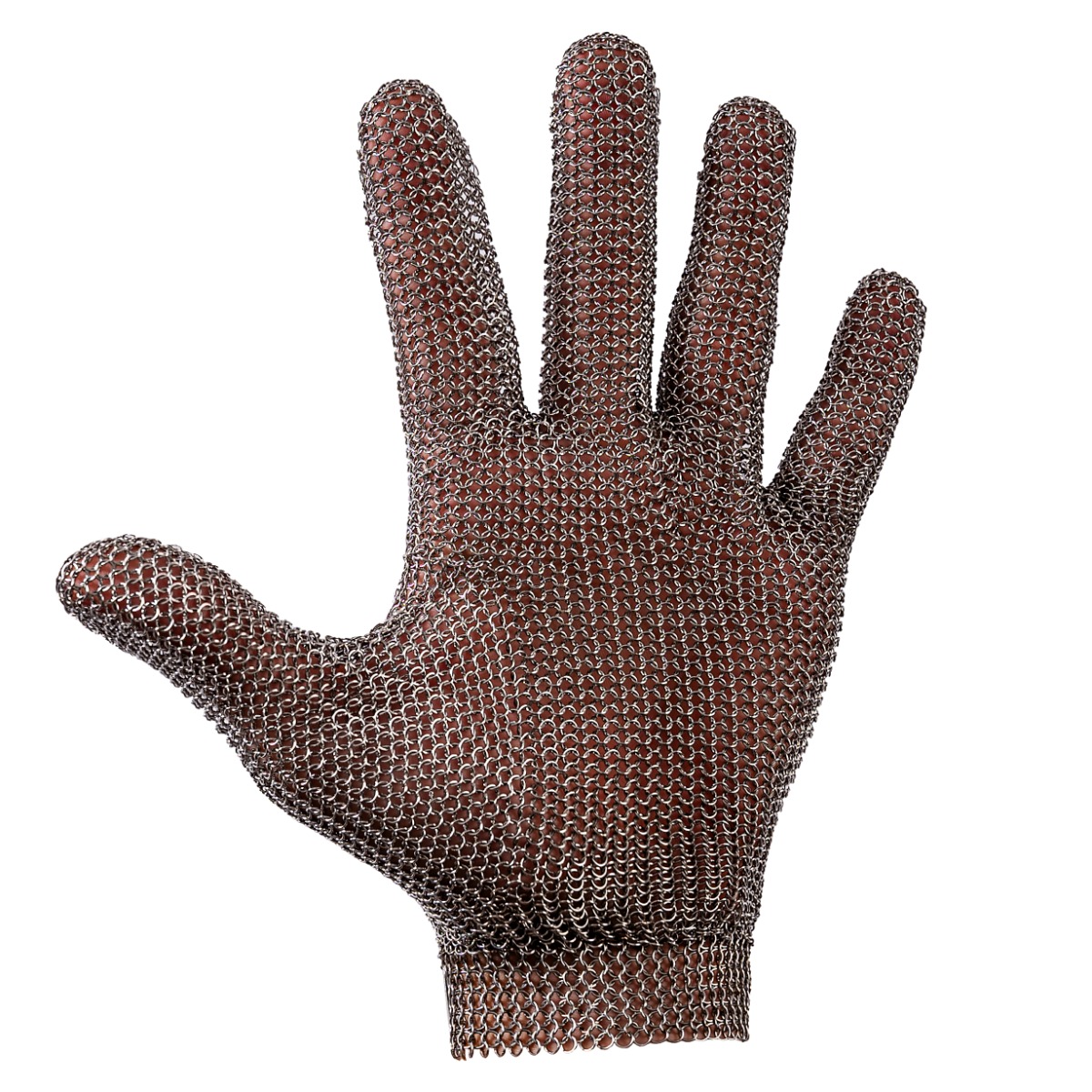 Luva de segurança confeccionada em elos de aço inox cromo-níquel, fechamento ajustável através de fechos (presilhas) e engates metálicos no punho, ambidestra, modelo cinco dedos. Tamanhos/cor: XXP-5 (marrom), XP-6 (verde), P-7 (branca), M-8 (vermelha), G-9(azul) e XG-10 (laranja). Referencia/tamanhos: DA-N49; DA-N50; DA-N51; DA-N52; DA-N53; DA-N54. DA-N49T7,5; DA-N50T7,5; DA-N51T7,5; DA-N52T7,5; DA-N53T7,5; DA-N54T7,5 (Punho de 7,5 cm e engates metálicos no antebraço). DA-N49T15; DA-N50T15; DA-N51T15; DA-N52T15; DA-N53T15; DA-N54T15 (Punho de 15 cm e engates metálicos também no antebraço). DA-N49T19; DA-N50T19; DA-N51T19; DA-N52T19; DA-N53T19; DA-N54T19 (Punho de 19 cm e engates metálicos também no antebraço). DA-N51T50; DA-N52T50; DA-N53T50 (Punho de 50 cm, engates metálicos também no antebraço e ajuste com suspensório).